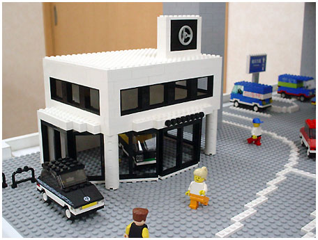 Some mini-figures are also set on the floor! Wow, this is a showroom of Mercedes-Benz! Can you see the Benz-logo on the car? Fantastic! Another friend placed a car in the showroom! |