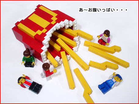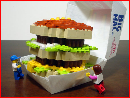 お〜 やっぱビッグマックはデカイ!ちょっとミニフィグさん、私が食べるんだからあっちへ行ってて! う〜ん、なかなかイイ肉だな!チーズもとろ〜り |