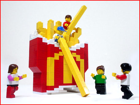 食べ物を作ろう!と思ったら、何故か「マックだなっ!」と思って… 「バリューセット・ビッグマック」の原寸LEGOバージョン! 食べてみるぅ? |